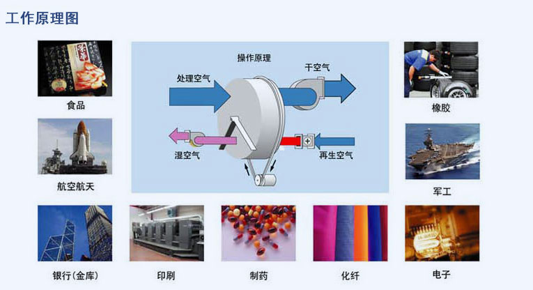 在四季型转轮除湿机中,除湿功能是必不可少的,其原理是:湿的空气经过过滤器后,进入蒸发器中,与蒸发器的表面相接触,使得空气中的水蒸气凝结成水滴,然后聚集到积水盘中,排出。与此同时,对空气进行深度除湿,通过由吸湿材料制成的转轮,从而达到除湿的目的。